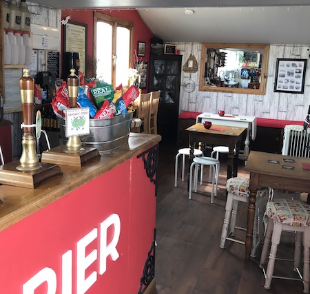 Like other seaside piers, Herne Bay’s suffers from lack of clear identity. Being a Tuesday afternoon only a handful of the small business huts were open yet there was enough to sense that this could be a cool place most of the year round. A well-designed pub-bar, Beer on the Pier, is owned by a local brewer and is very appealing. Ellie, who was running the bar, provided a sober and informative outline of the town, it’s issues and it’s positives. A safe place, jobs for younger people are not easy to come by and the biting wind is the worst weather for trade. “People will brave the rain but the wind is a killer”. The four years she has been living in Herne Bay there has been steady improvement, “more understated development than seen in Margate” (Ellie, Beer on the Pier). A good quality new stage has been erected for the summer season, yet the pier closes most days by 6pm!