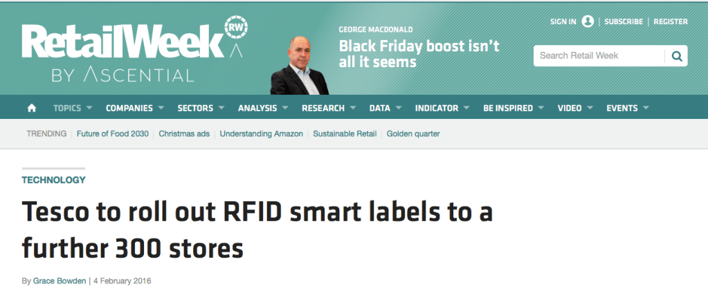 Tesco has also been developing ways of making shopping in-stores a seamless process. As far back as the 1990s, the company were considering embedding Rfid tag technology.