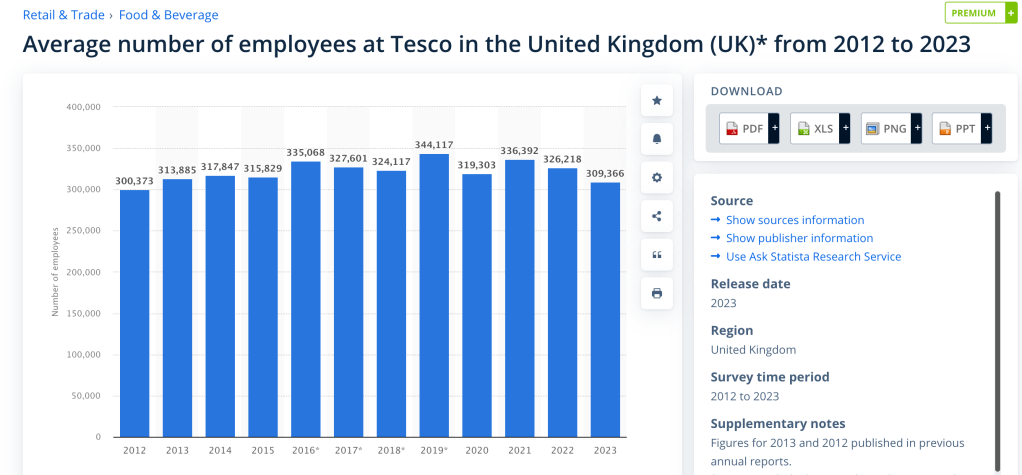If Tesco automated completely, the impact on jobs will likely be immense. Tesco employs 450,000, many with low skills. Supermarket jobs are vital for those requiring flexible working. Single parents and gig workers are particularly vulnerable to losing out. If Tesco decides to licence Amazon’s technology, the consequence will be significant. The shop portfolio below shows the number of employees working in the UK and stores of up to 30,000 sq ft:[59].