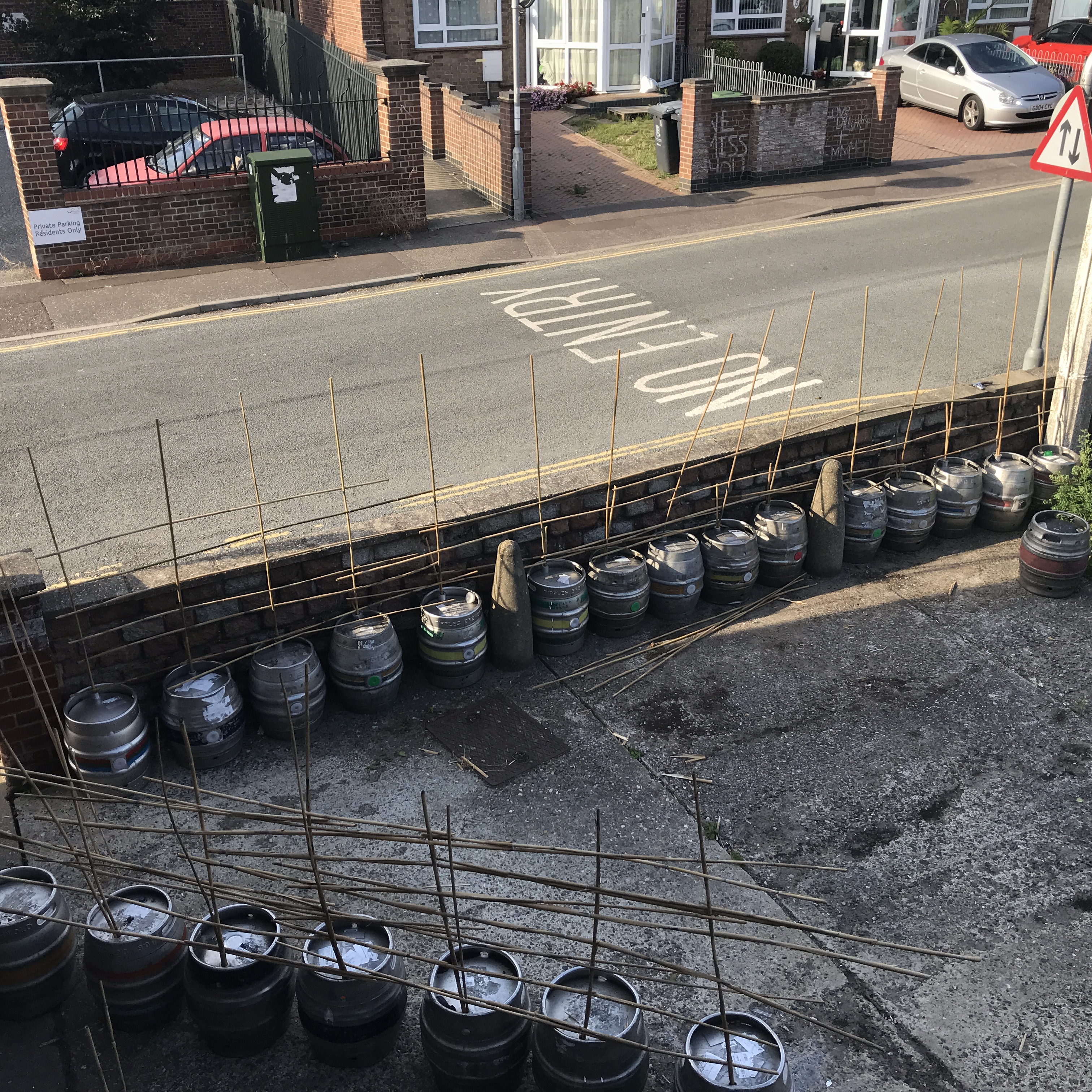 With licensed premises again allowed to open, time came to move some of the plants to Portal B, their new home and build the bamboo fence around the car park using the old beer barrels.