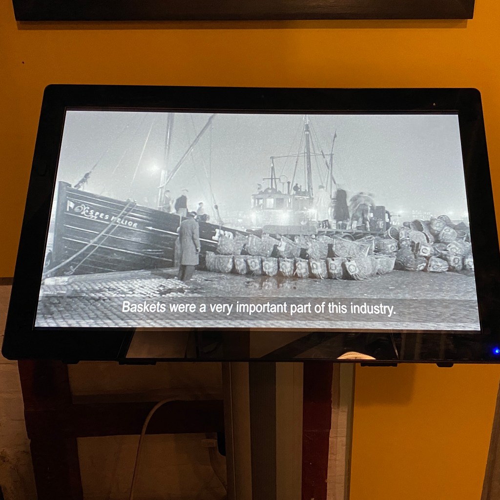 Left to right: Short film on the importance of baskets to the herring industry, Selection of baskets, A port for 800 years